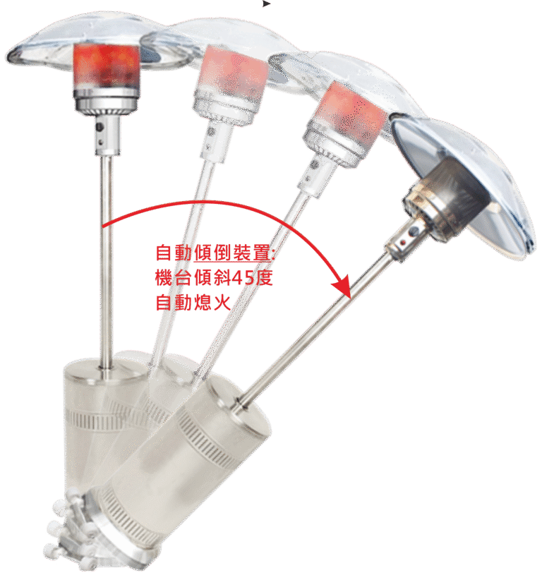 圓頂暖爐以不鏽鋼材質打造,兼具耐用性與美觀性,適合多樣戶外場合。功率範圍從 5kW 至 13kW,可靈活調整加熱需求,滿足不同天氣和場景的應用。輕量化的設計 (僅21kg,不含瓦斯桶) 讓移動與佈置更加方便,是庭院、露天餐廳與戶外活動的理想取暖選擇。內建自動傾倒保護裝置符合 CE、CSA 和 AGA 認證,確保使用安全,讓您在舒適的環境中盡情享受戶外生活。